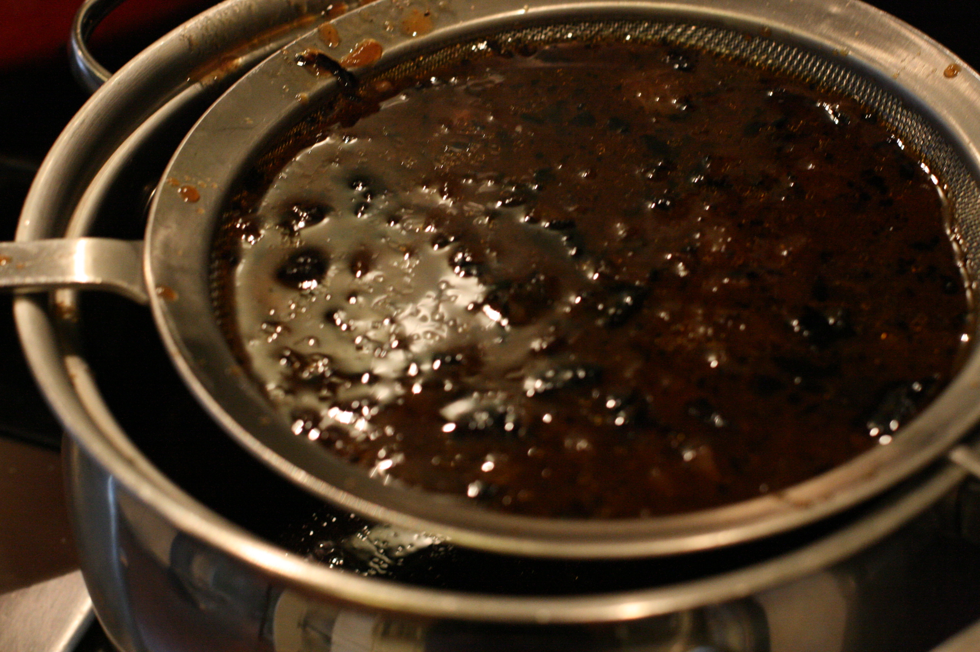 The cooking liquid is strained and reduced a bit.  IMG_4178