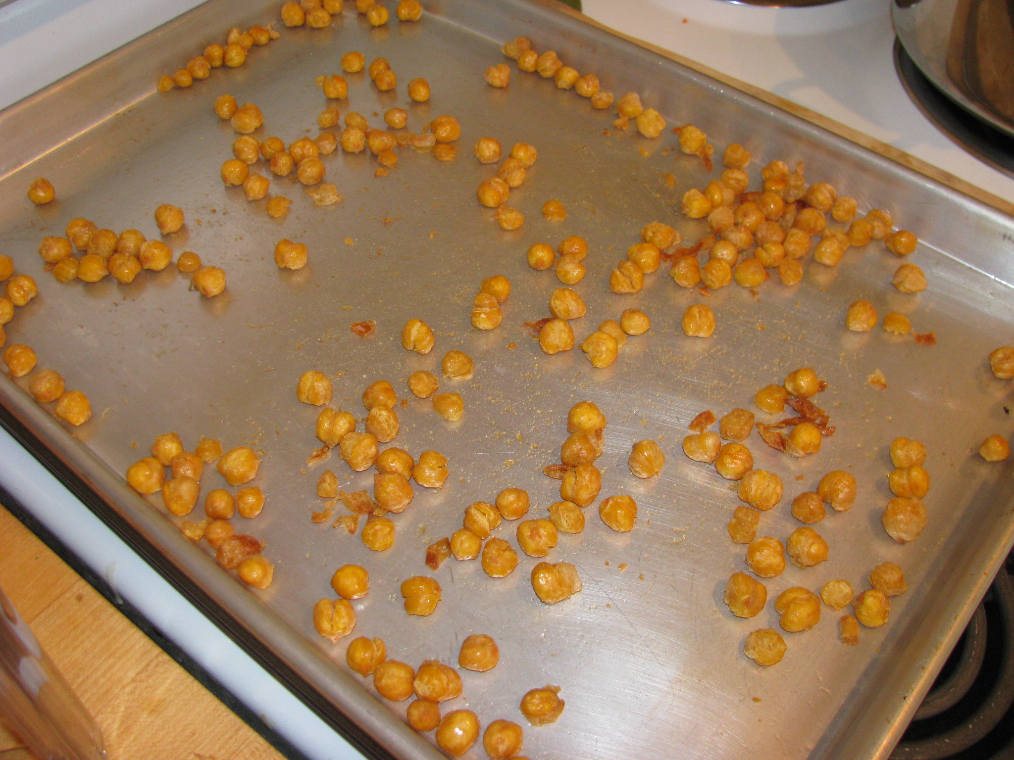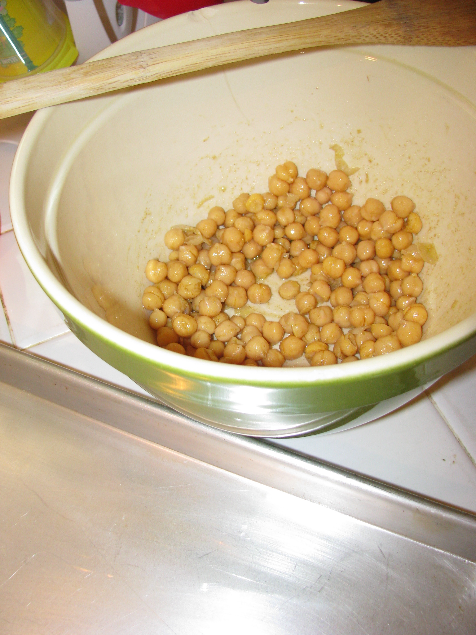 For the chickpeas I just used a 15ounce can. Drain and pat dry. Then toss with olive oil, salt, and cumin and bake for 10 to 20 minutes in a 425 degree oven.