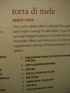 A few days ago, Bev sent me this post of her Torta di Mele that she made out of our new book, Whatever Happened to Sunday Dinner?