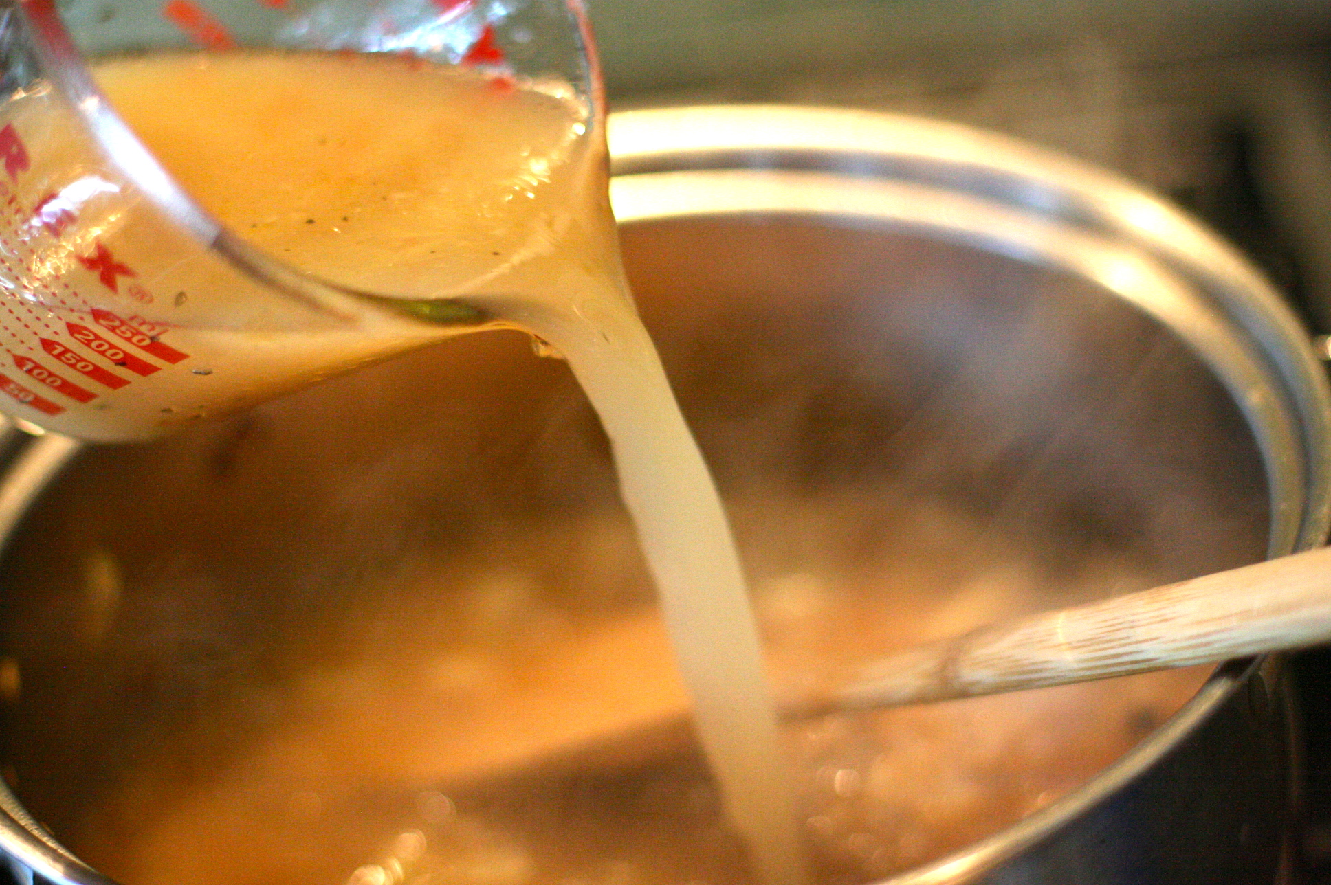She uses vegetable broth but says early on in the book that it’s OK to sub- so I used chicken broth because that’s what I had in the freezer.