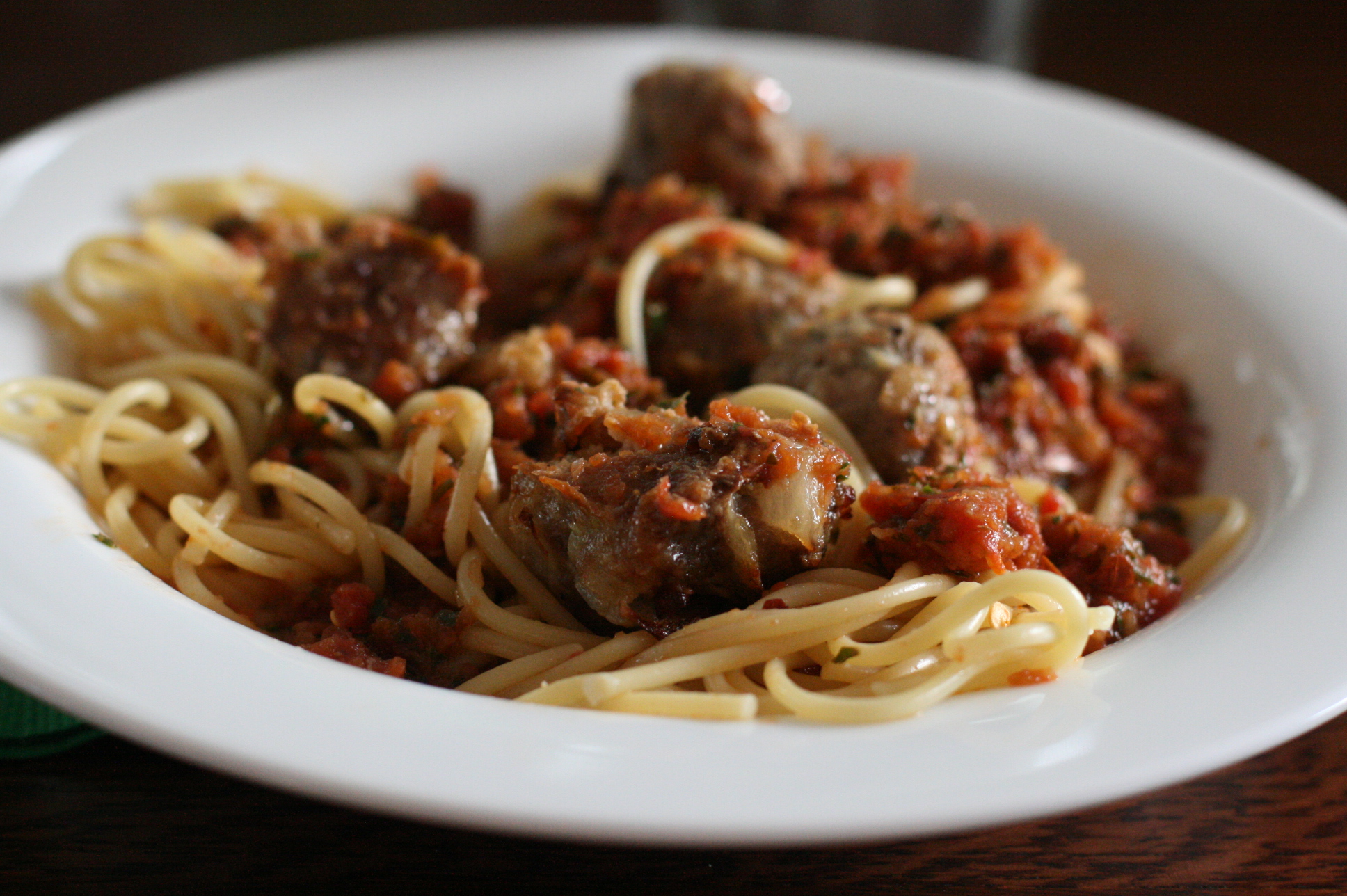 I liked the diminutive size of the meatballs. Small enough to eat in one bite. I also liked the nutmeg in them. I wasn’t sure about how I would feel about it- but it made them a little more interesting and versatile than meatballs I have made in the past.