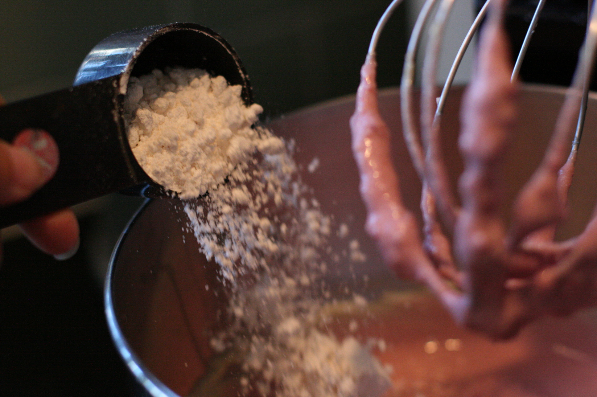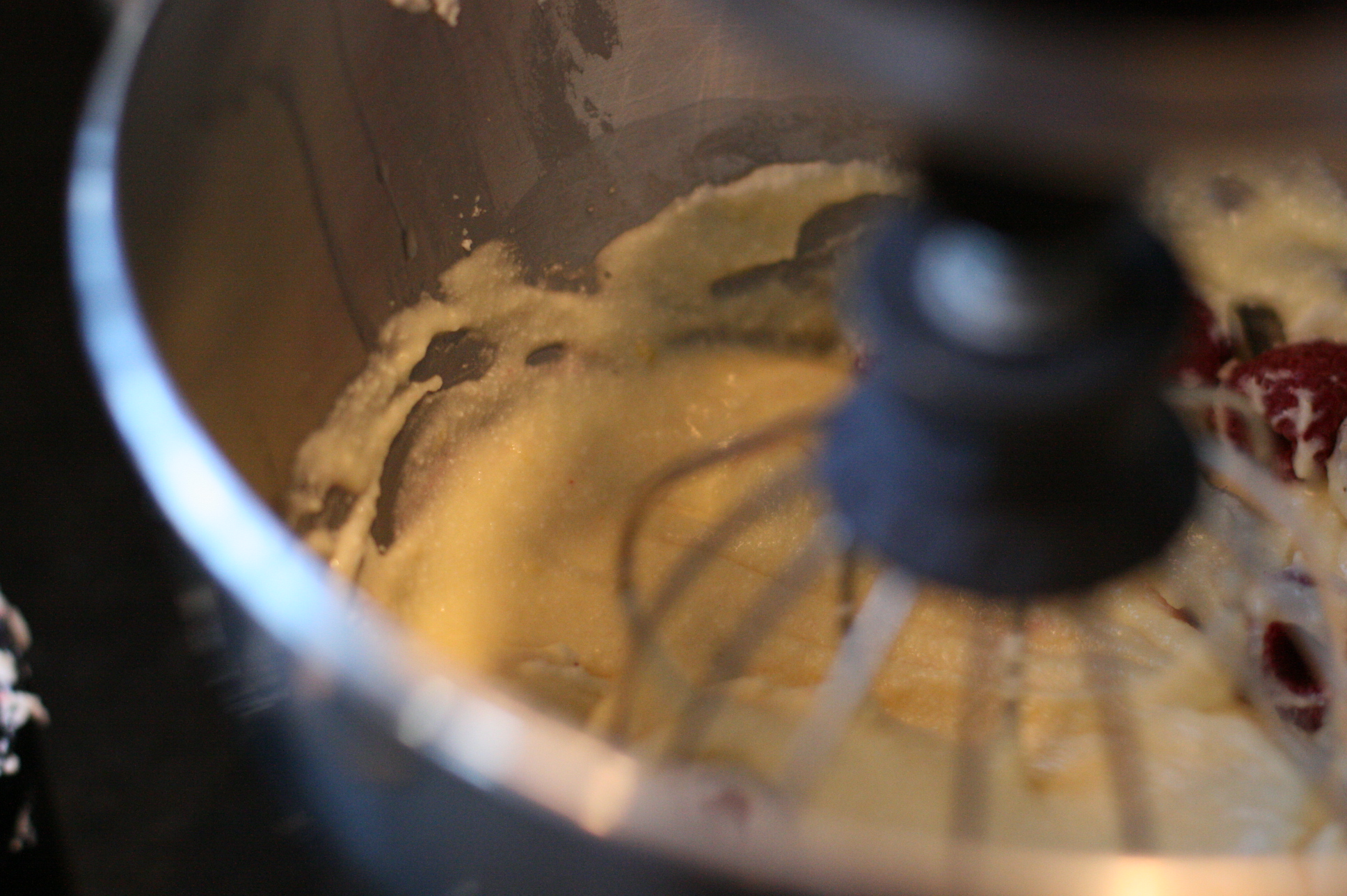 A lot of wet ingredients- not much dry. I was surprised at how pink the batter was- and a little worried- but when cooked, it loses it’s pepto glow.