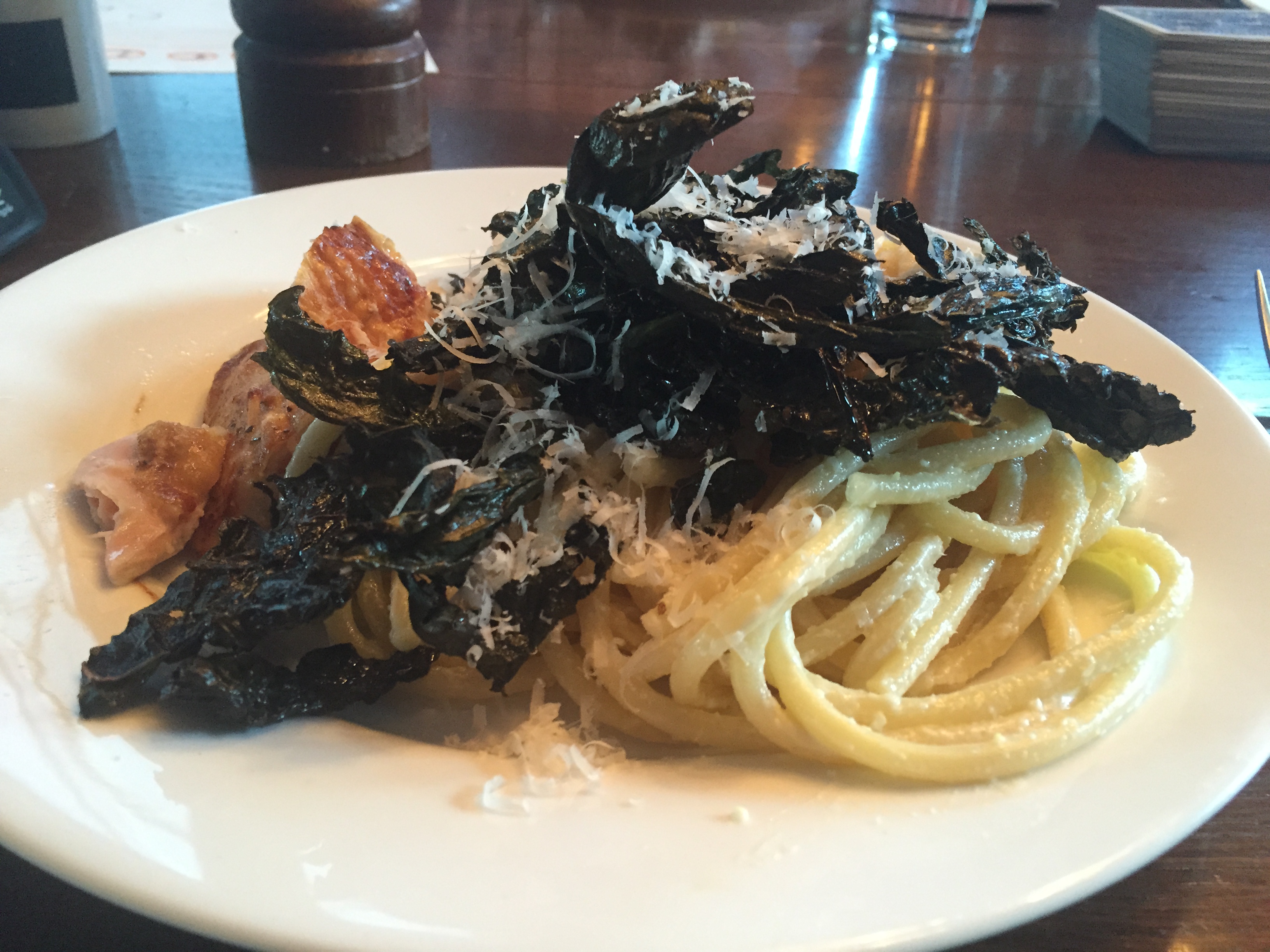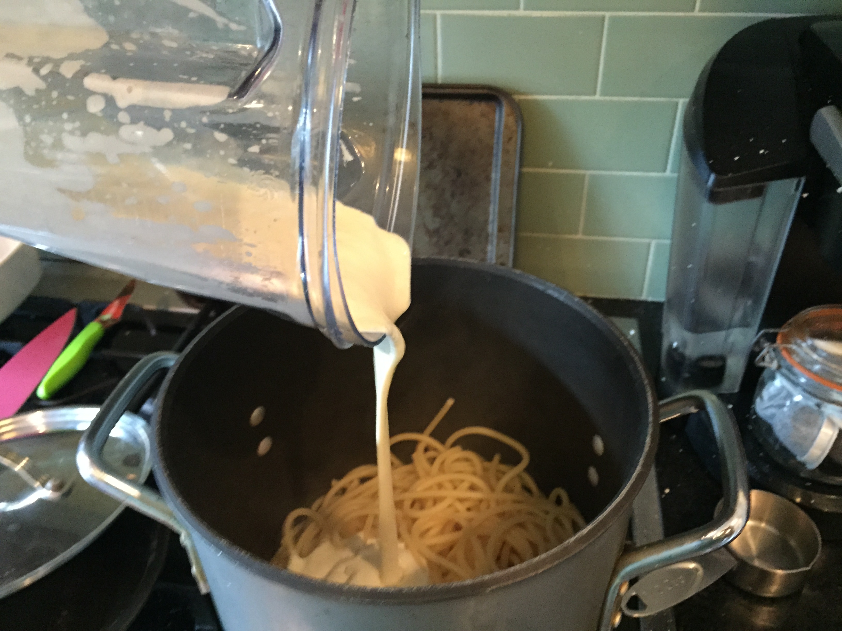 At any rate- the lemon and some cream, and egg gets whirled in the blender and combined with the cooked bucatini.
